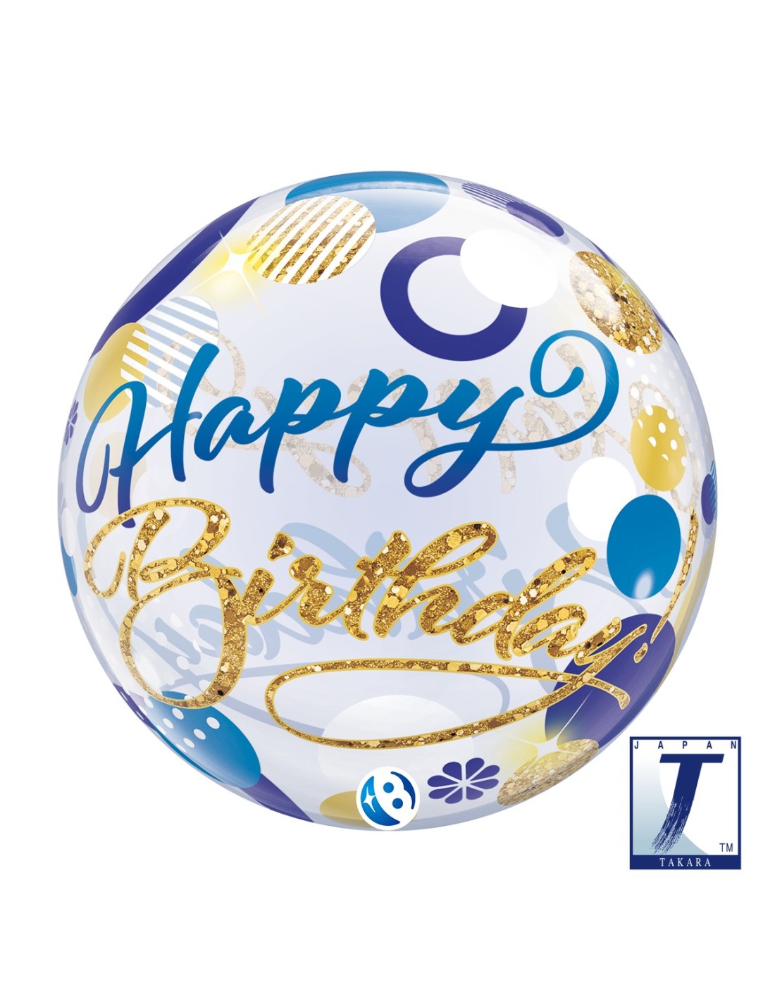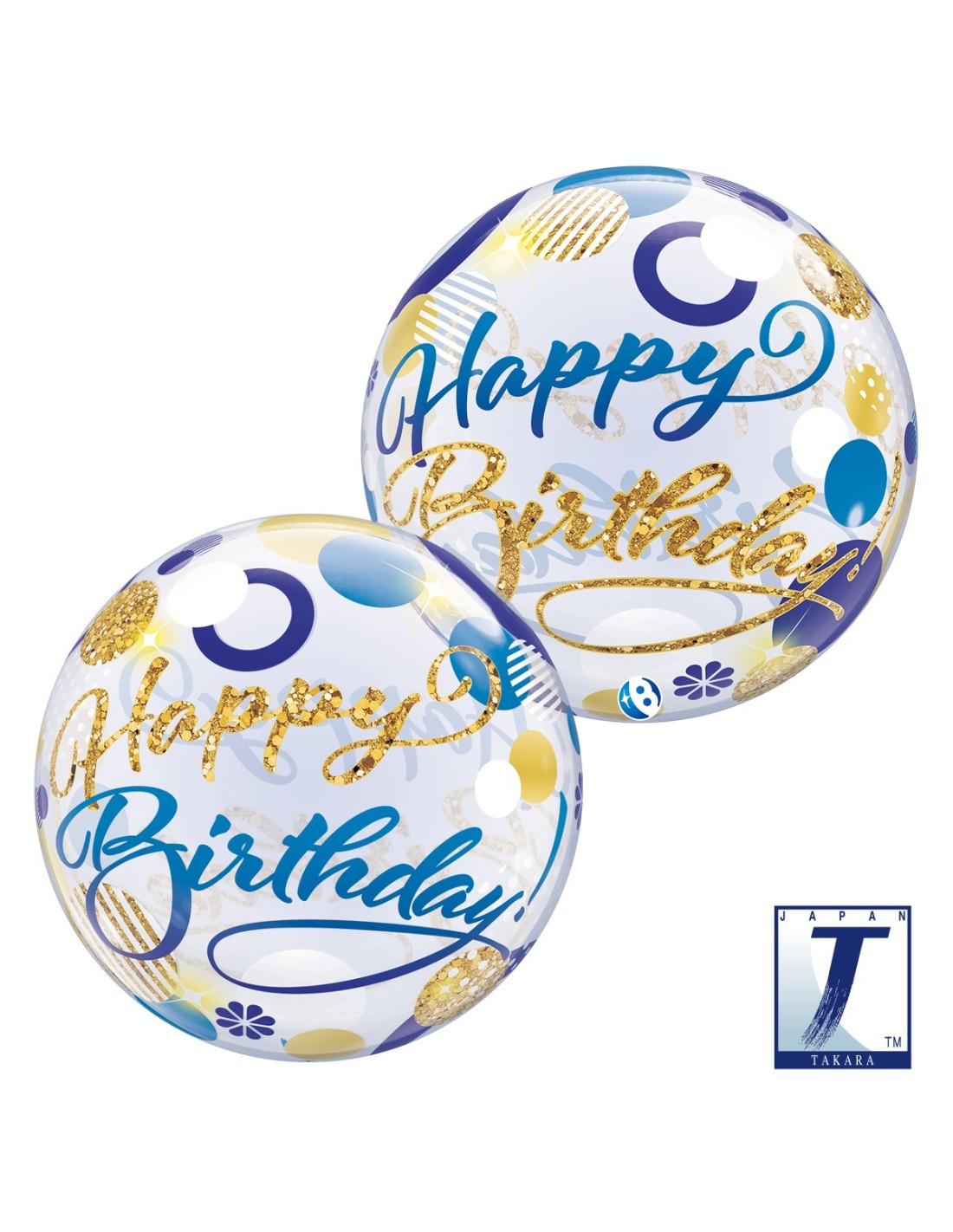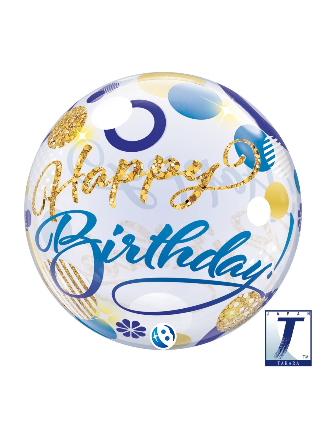 22"DECO BUBBLE BIRTHDAY BLUE & GOLD DOTS